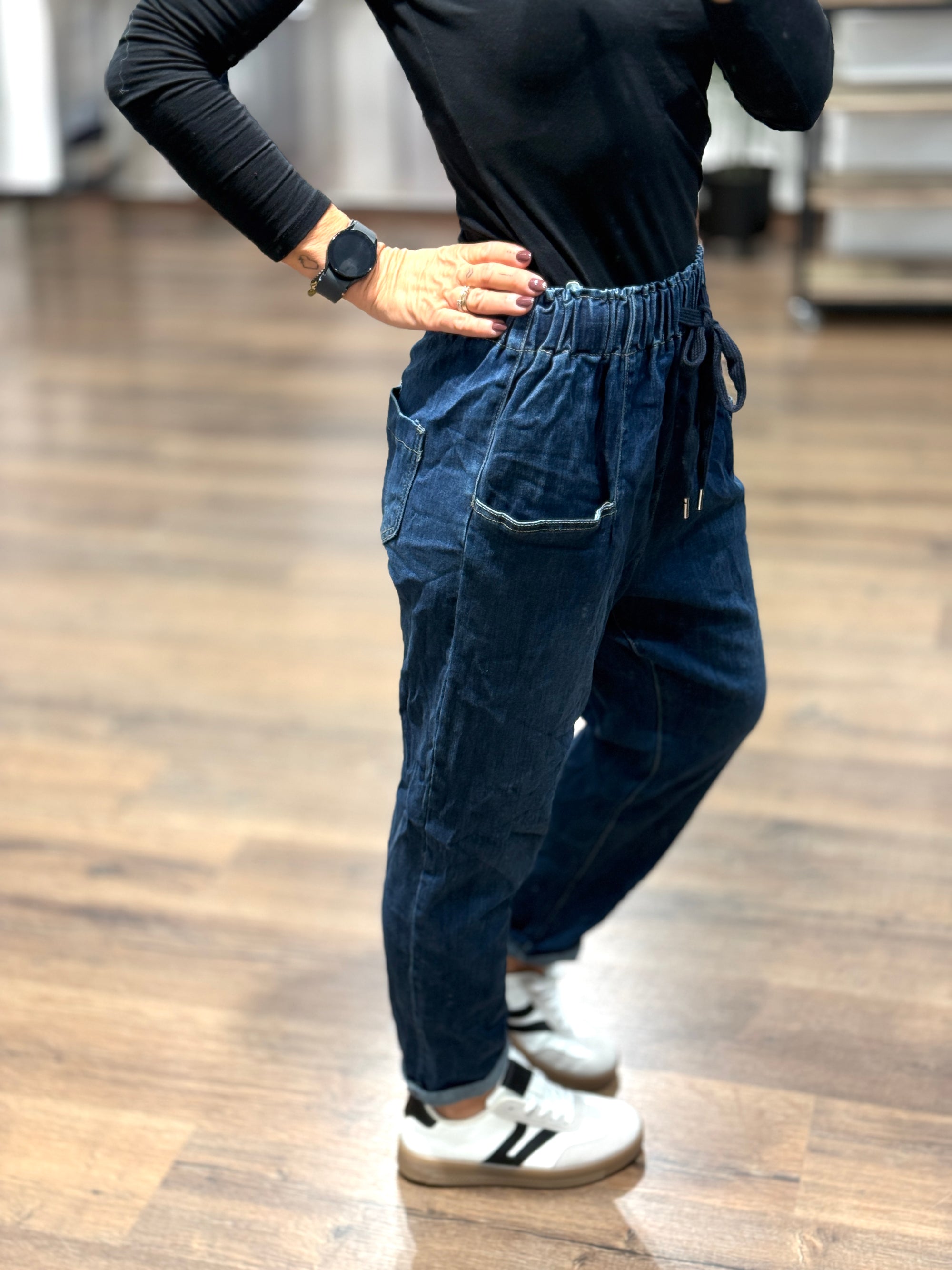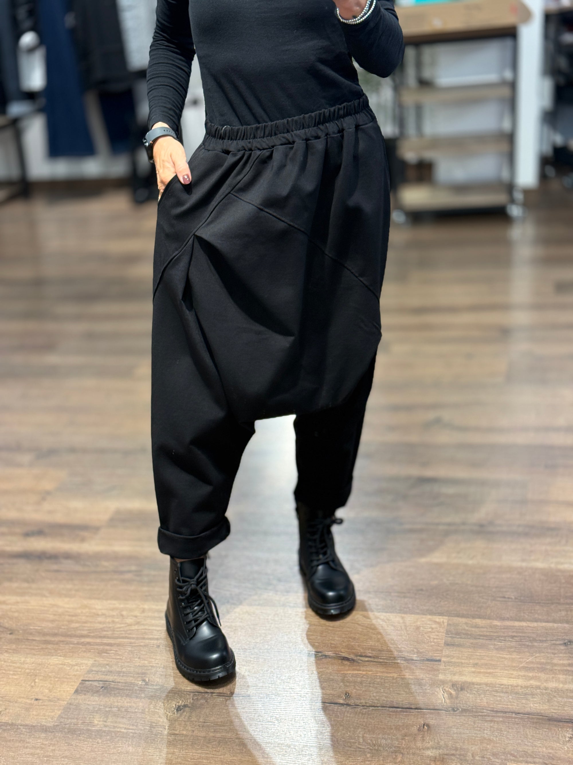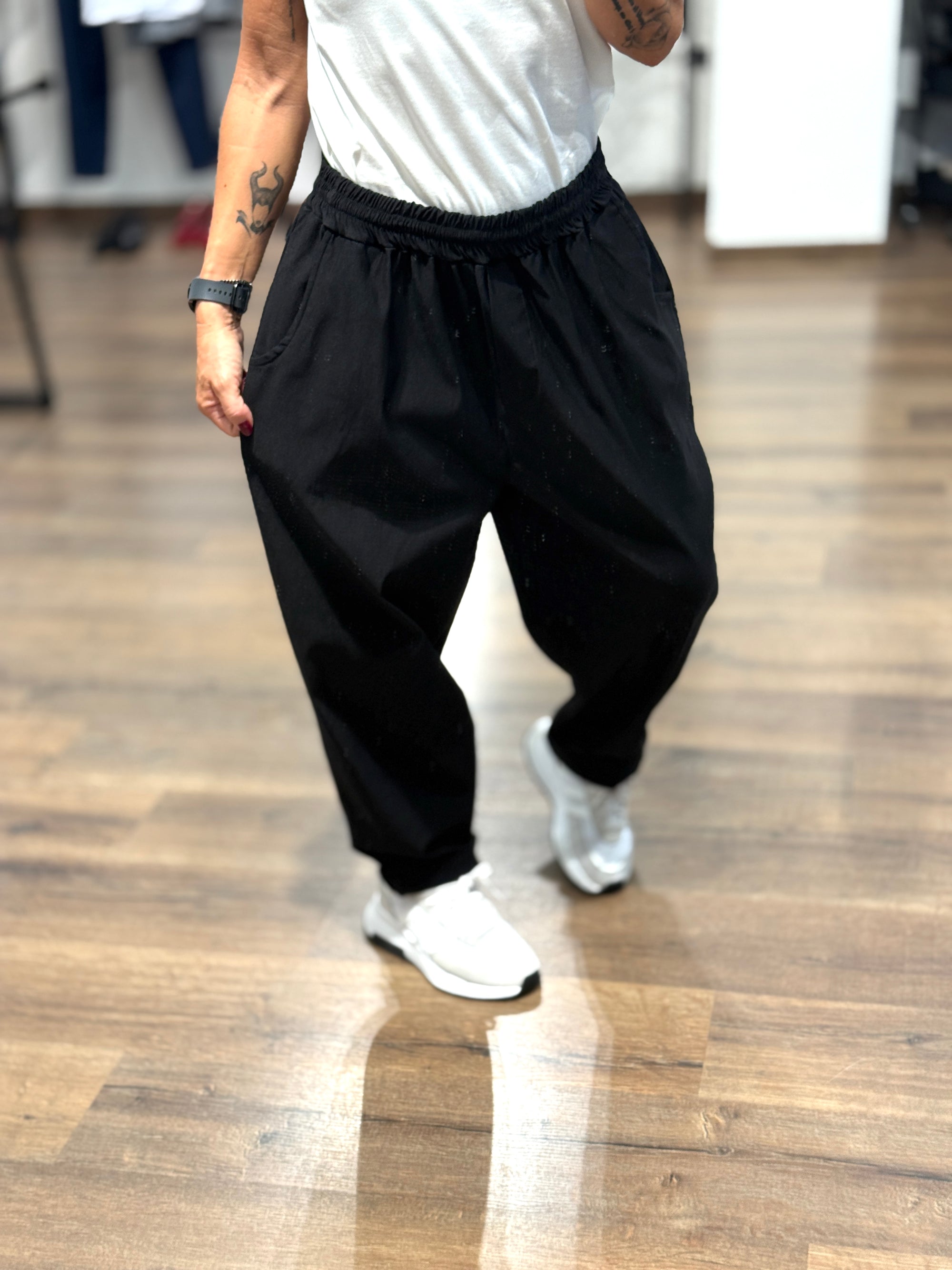 Pantalone con cavallo basso